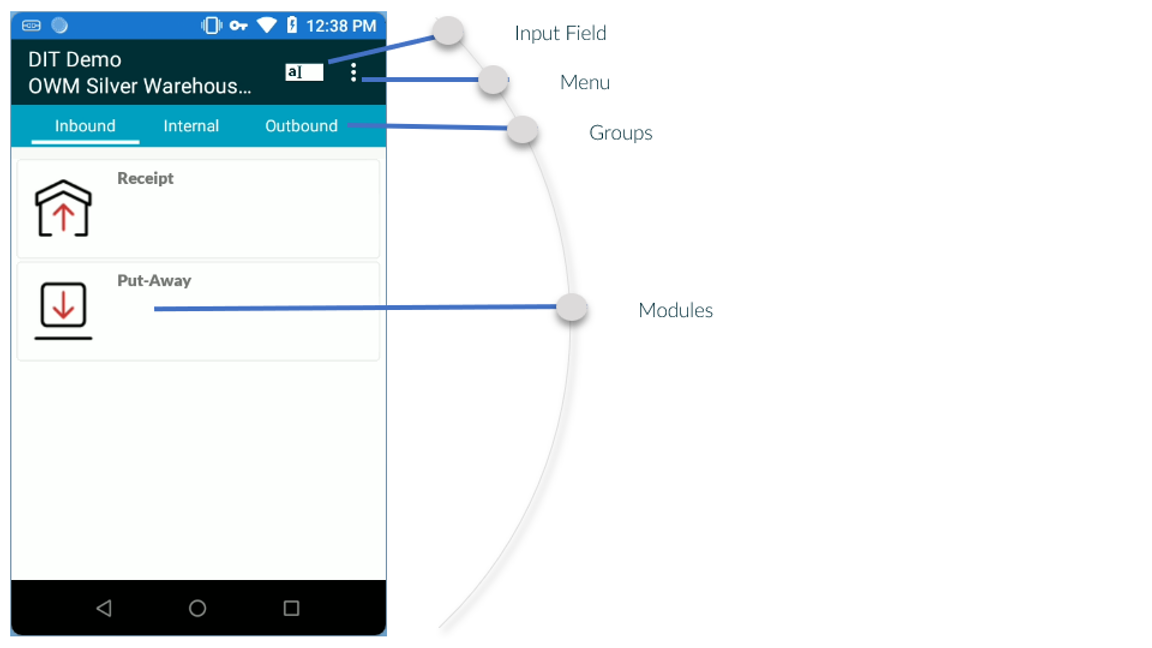 Android OWM 6 App on the handheld device Advanced Online Warehouse Management for Drink-IT • Article • 7/6/2023 • 5 min Login Screen Menu Document List Item List