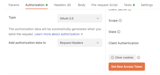 Using the Get New Access Token button, the Bearer Token should become available to be used in your requests.