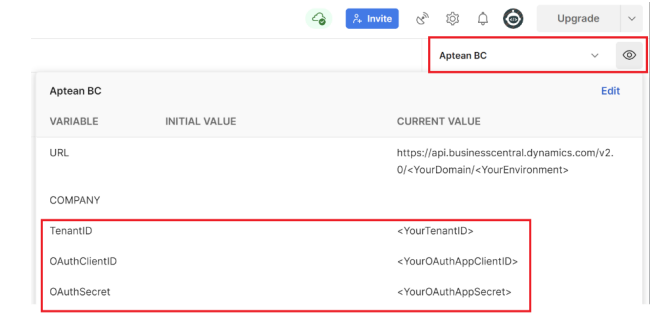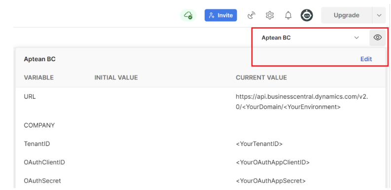 - Download the latest version of Postman Aptean BC Environment Variables here.