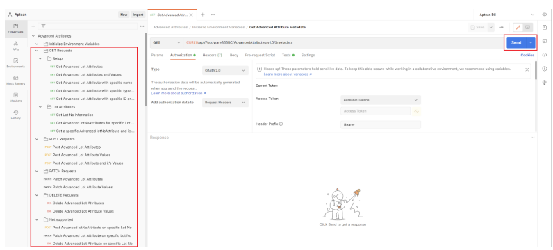 - Download the latest version of Postman Aptean Advanced Attributes Requests Collection here.