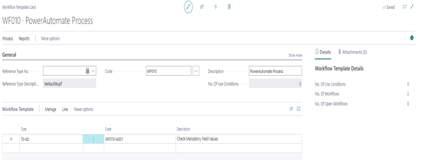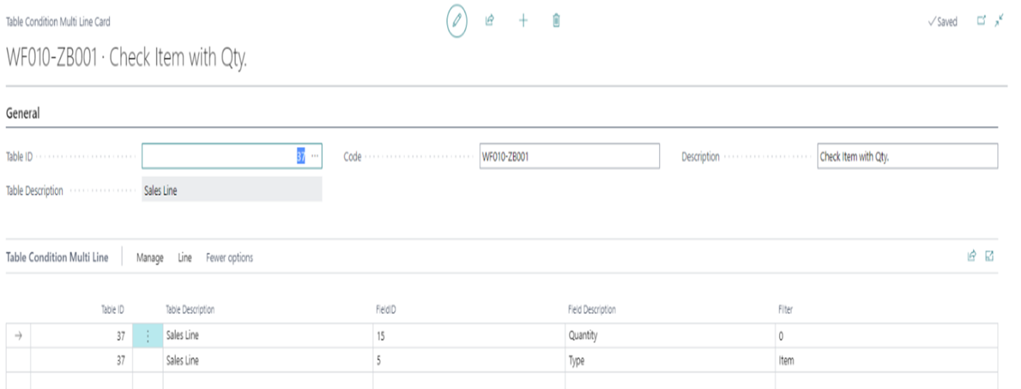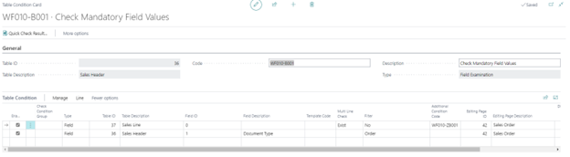In Aptean Advanced Workflow Template Card page, you can select the workflow condition.
