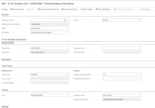 In To-do Template Card page, you can select Field Examination.