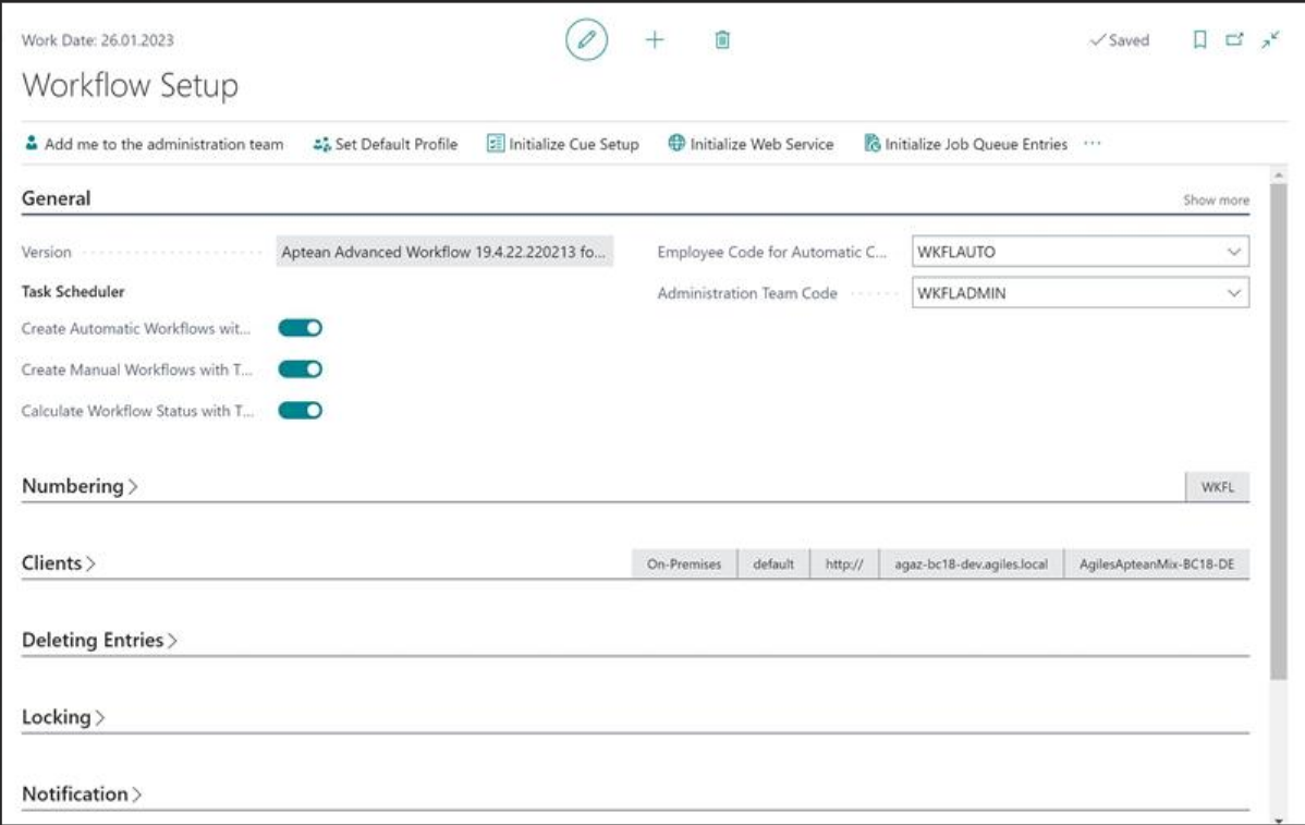 Aptean Advanced Workflow basic setup into a new database after import of workflow objects in the customer database.