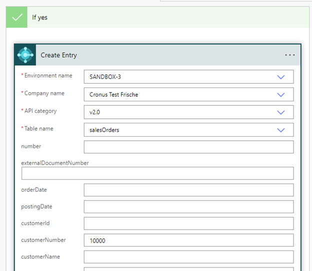 - In the Table name field, select sales order from the drop-down list.