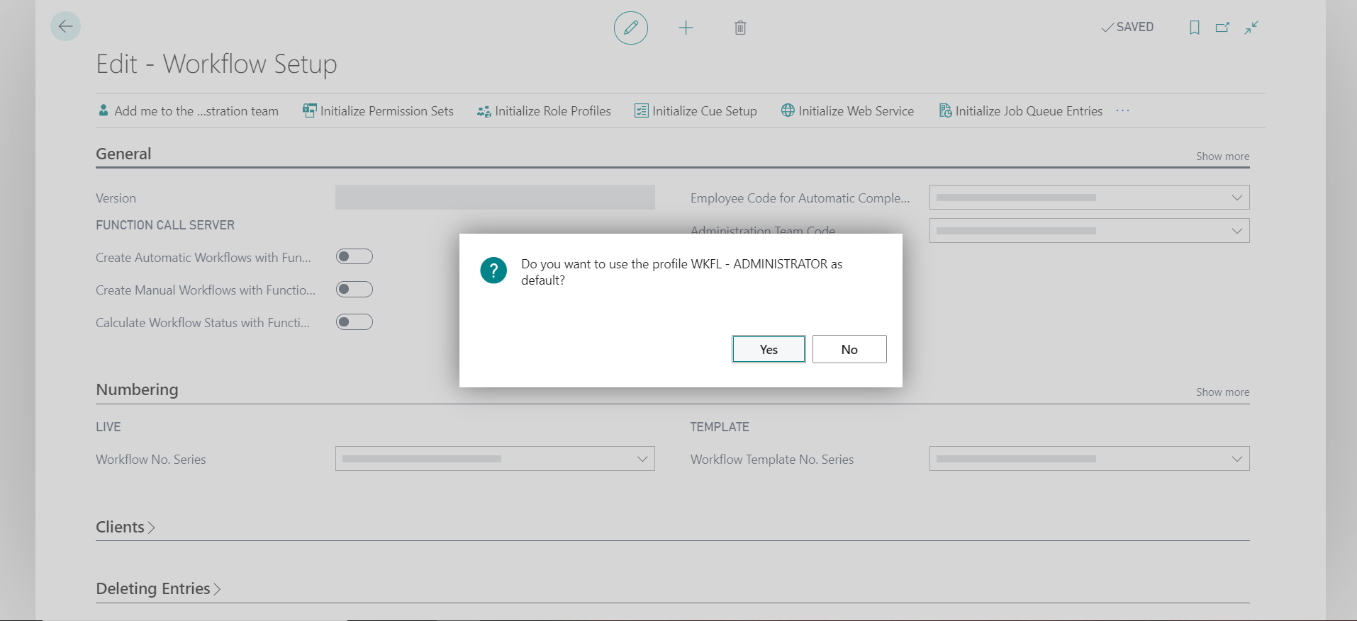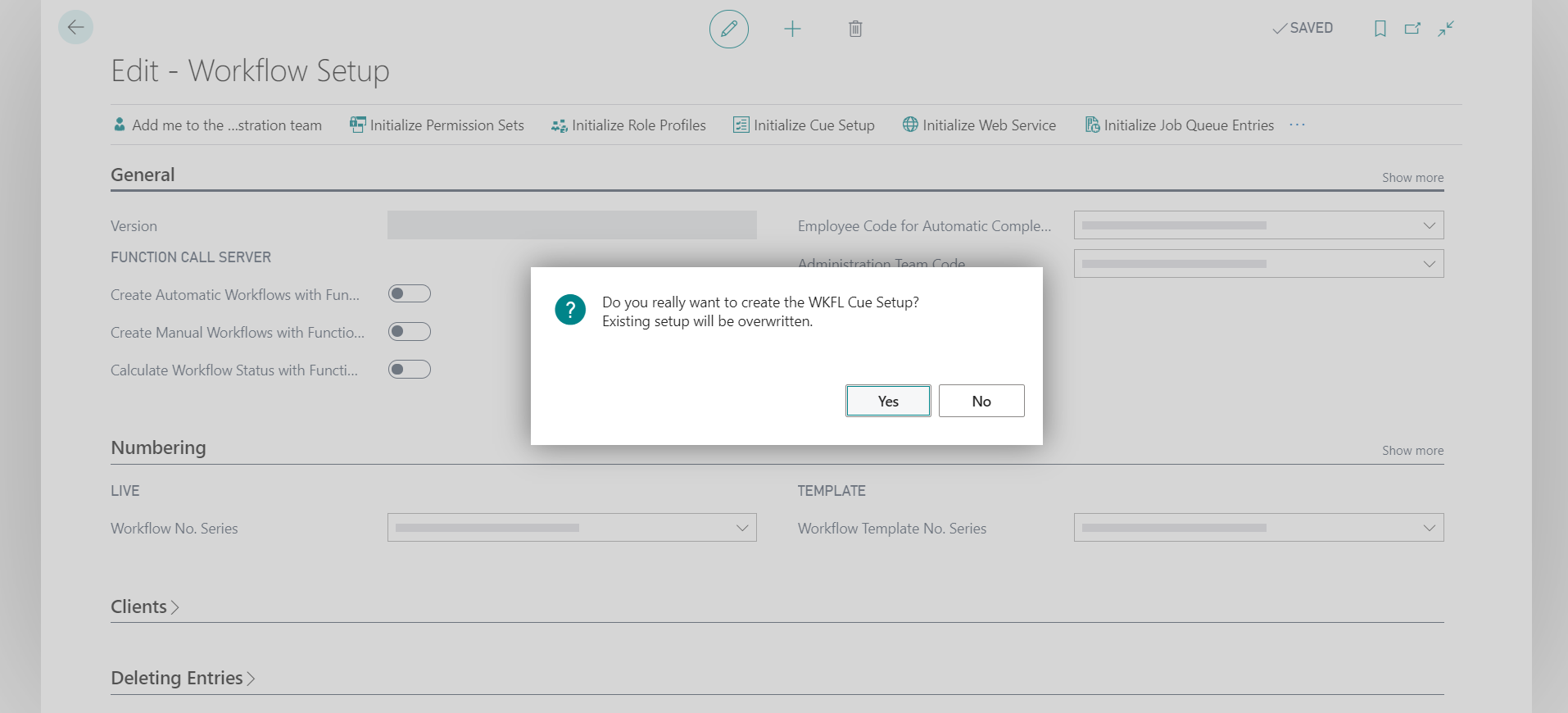 A prompt appears to confirm whether you want to create the Job Queue Entries for Aptean Advanced Workflow. - Click Yes.