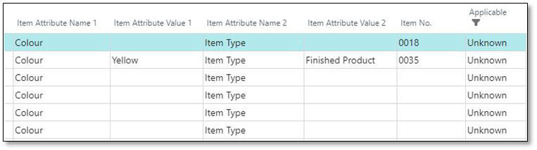 The value in the Applicable field is always set as Unknown since it first must be checked if the item number and item attributes correspond with the purchase lines.