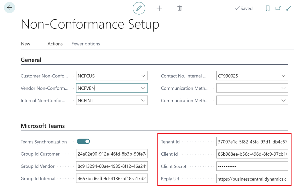 For the Non-Conformance Teams integration, you can set up a Teams channel per type in Business Central.