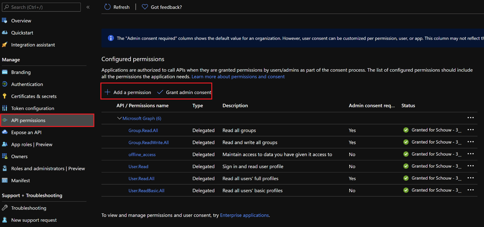 Select Grant admin consent. (You should have admin rights for this Azure tenant to be able to perform this step). For more information, clickhere.