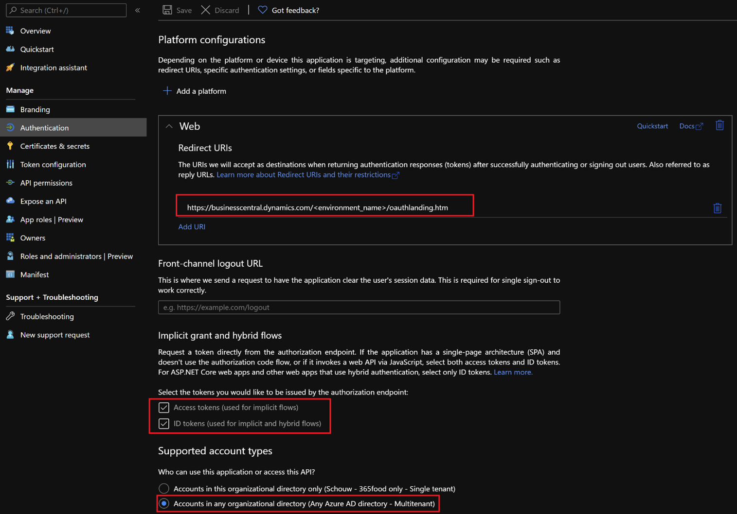 The app registration for Non-Conformance should be set up as multi-tenant. Use authorization tokens and the Business Central OAuthlanding redirect URL for the specific environment(s).