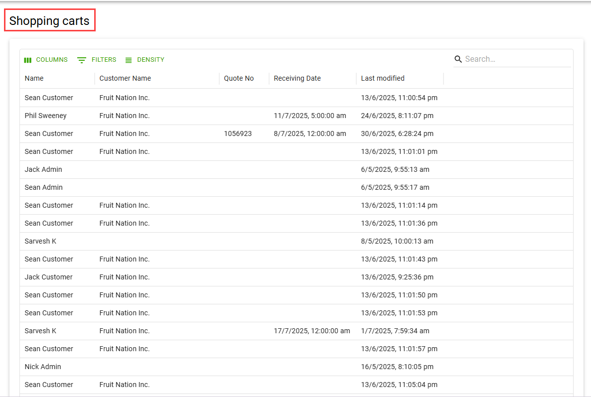 Use the search bar to filter the required information from the shopping carts list by entering the details or keywords.