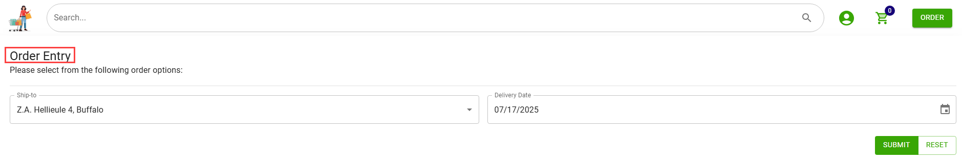 Before submitting, you can select the RESET button to reset the specified values on the Ship-to and Delivery Date fields.