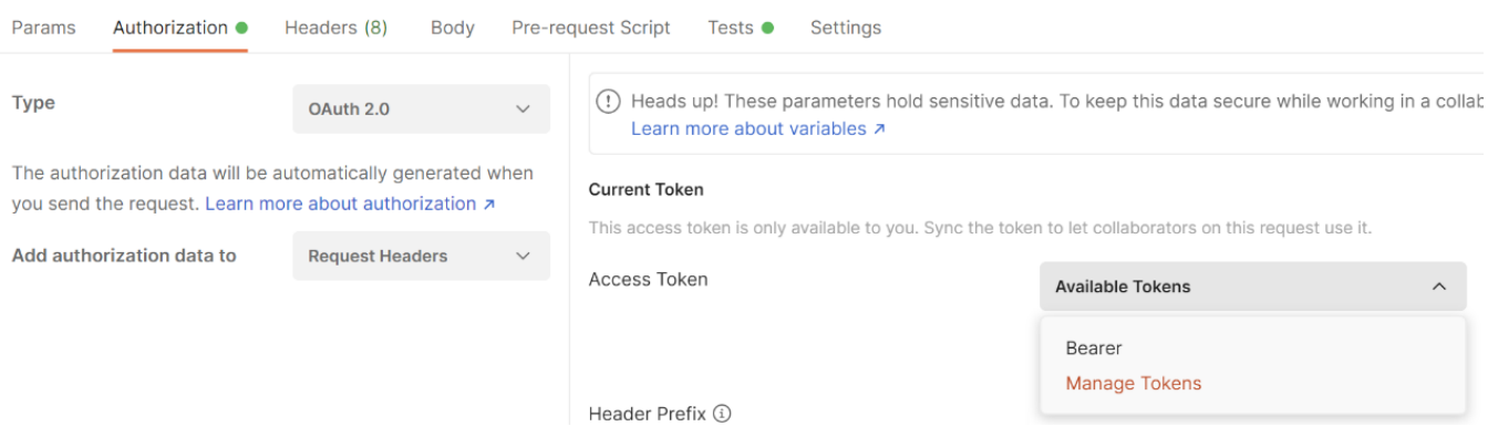 Using the Get New Access Token button, the Bearer Token should become available to be used in your requests.
