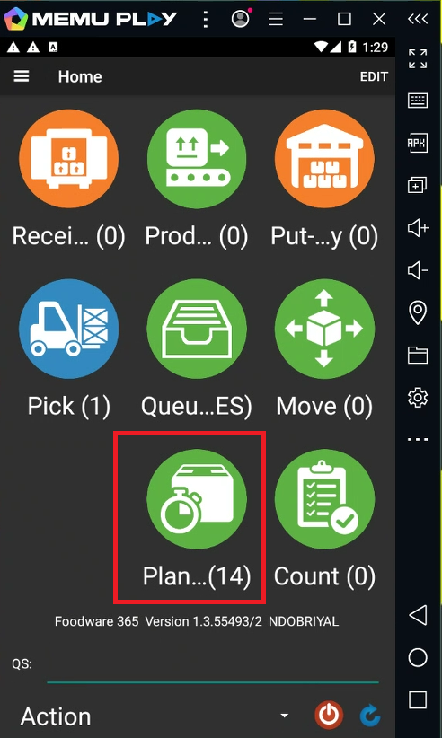 On the Aptean Mobile Warehouse Registration Home page, select the Planned Movementsicon.
