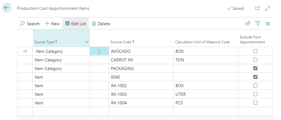 A production cost apportionment unit of measure can be set up on the Production Cost Apportionment Setup or the Production Cost Apportionment Items page.