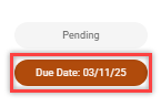 On the Quality Control Action Plan page, the system calculates and displays the due dates for task-based action items based on the value in the Due Date Calculation field. Action items appear in ascending order by due date and use the following color codes: