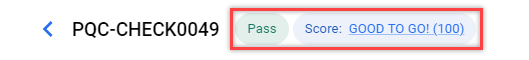 The quality check score appears on the page as a status indicator, with a colored tab showing both the pass/fail status and quality level score.