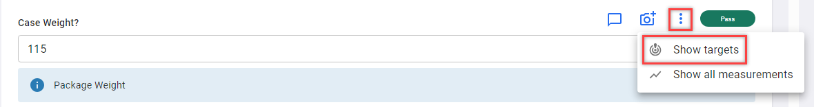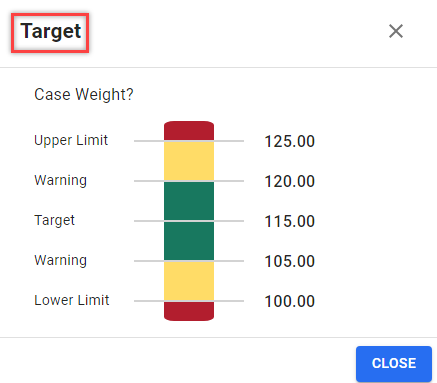 During quality checks, you can view target values for questions. Target values help quality control users ensure product quality by providing ideal and acceptable ranges for certain measurements. When available and not designated as blind targets, these target values are presented in a visual format for better clarity and understanding.