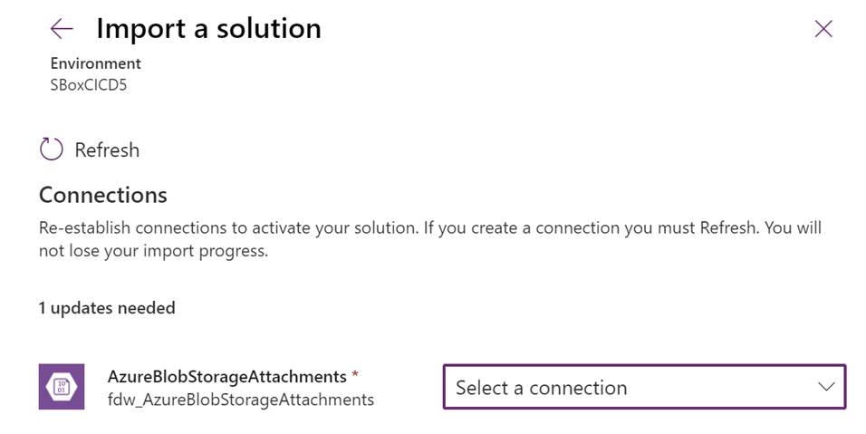 1. Select the Azure Blob Storage Connection to the storage for attachments.