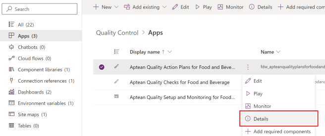 - Set up the Quality Control app (Power Apps, Aptean Quality Setup and Monitoring for Food and Beverage)