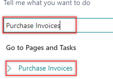 , enter Purchase Invoices, and then choose the related link.