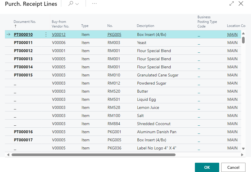 Select the preferred Document No. or document lines and select OK.