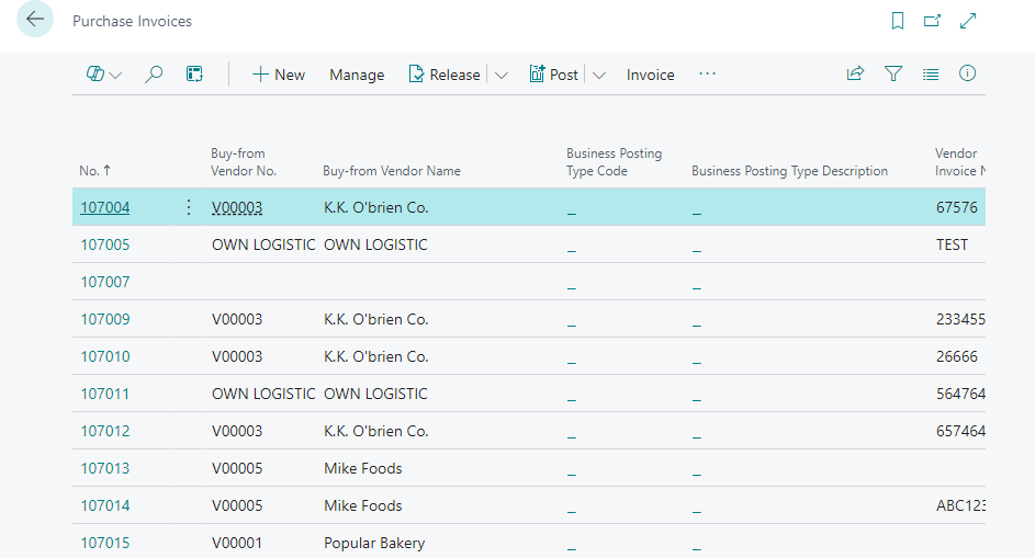 The Purchase Invoices list page opens.