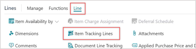 The Item Tracking Lines page opens.