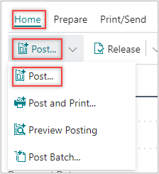 On the action bar, select Home > Post > Post.