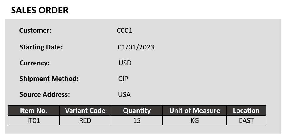 To understand how a trade plan rate is selected for a sales order line, consider the following example. Let’s say you have created a sales order for customer C001, with a sales order line for item IT01: