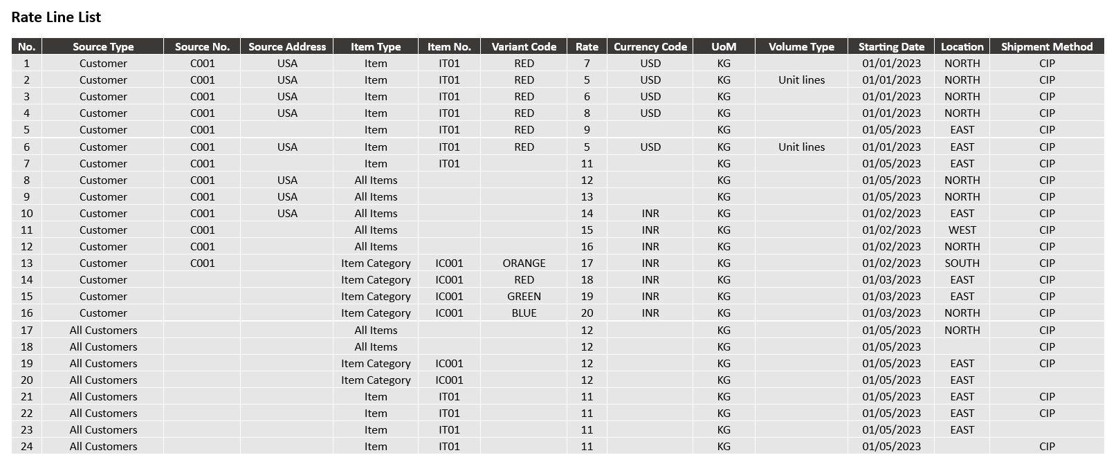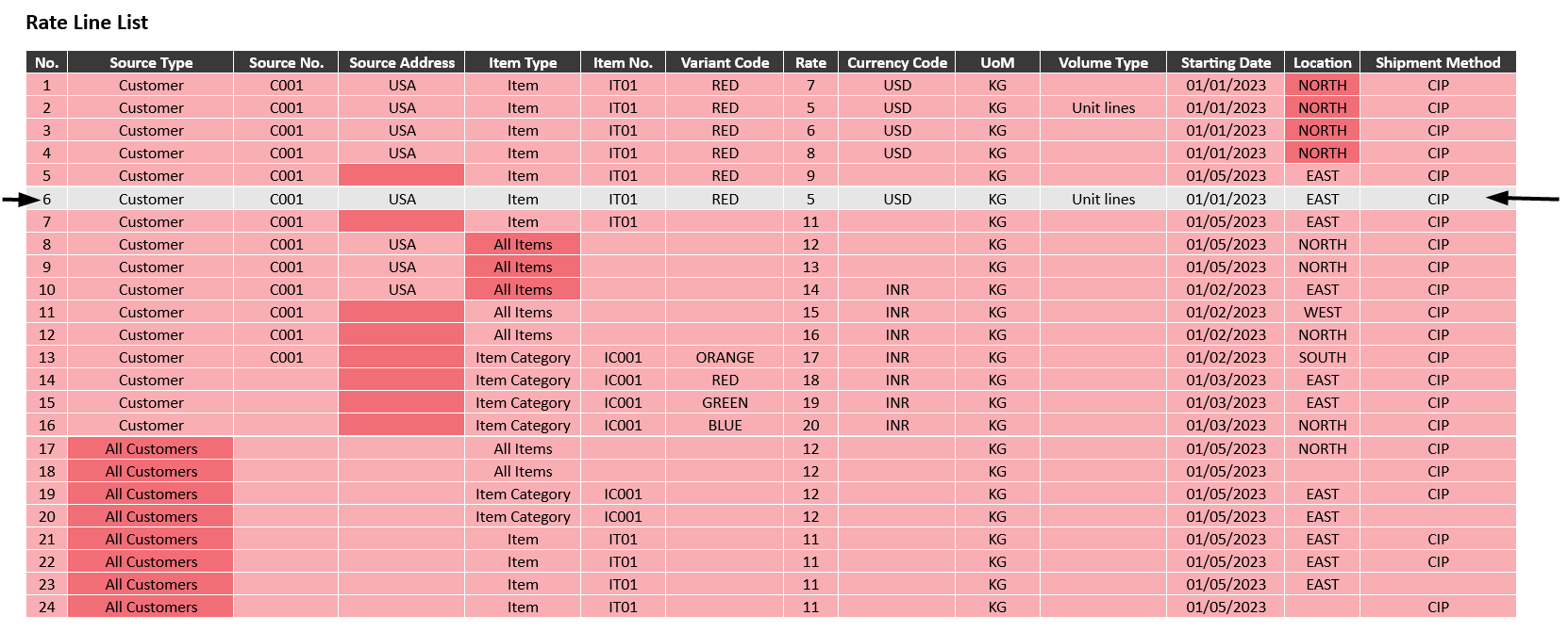 - Rate lines with Source Type set to All Customers are always valid for all customers.