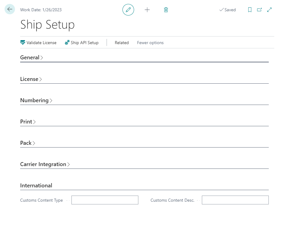 A number of values must be configured before you can use the Aptean Pack and Ship solution. These settings are entered in the Ship Setup page, which can be accessed by entering ship setup in the search bar.