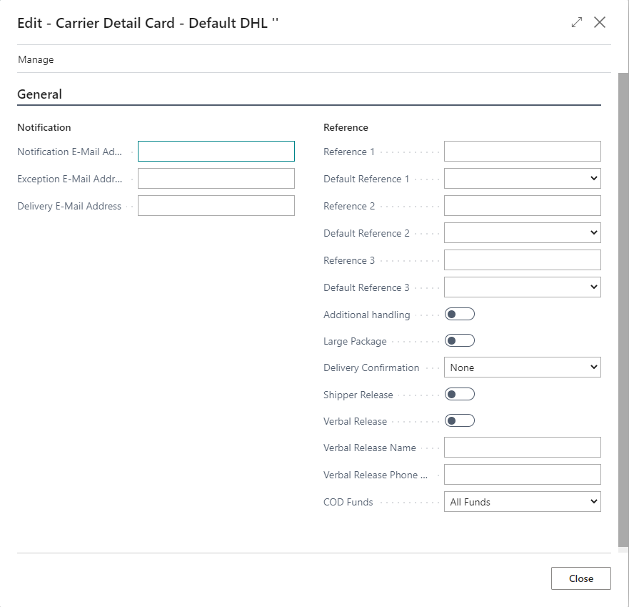 - Delivery Confirmation: Select the default delivery confirmation value that will be assigned to shipments using the service. When a shipping activity is sent to the shipping integration, the shipment record’s delivery confirmation setting will be populated based on the value on the corresponding record in Business Central.